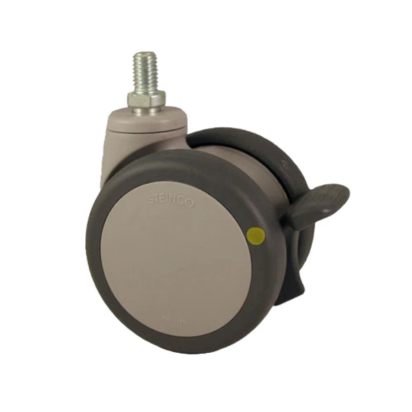 Tvillinghjul ESD Ø75 mm. Polyuretanbana. Broms, Gängad Tapp.
