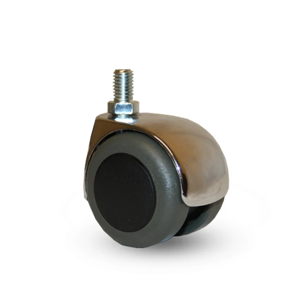 Tvillinghjul Mörk. Kromad kåpa. Polyuretanbana. Gängad tapp