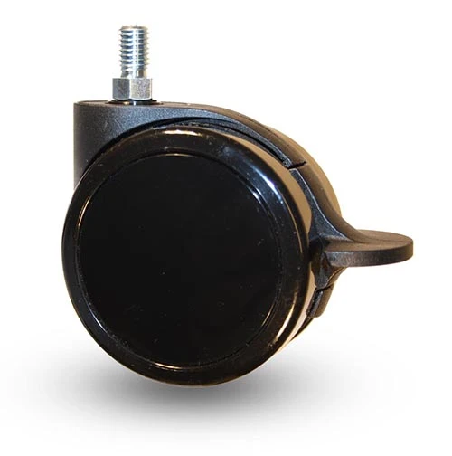 Tvillinghjul Ø75 mm. Polyuretanbana. Gängad tapp, broms