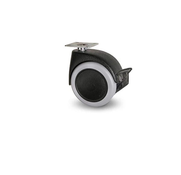 Tvillinghjul Ø75 mm. Svart kåpa. Polyuretanbana. Platta, Broms