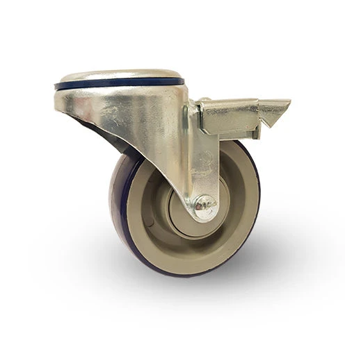 Containerhjul. 100×36 mm. Polyuretanbana. Centrumhål, broms. Kullager