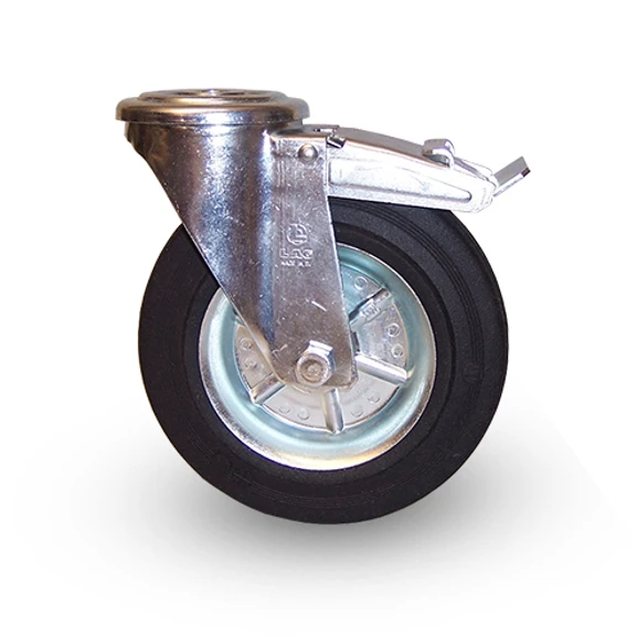 C3 Industrihjul Ø125. Gummibana, Centrumhål – broms