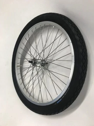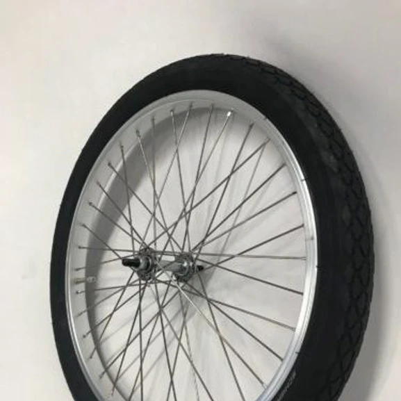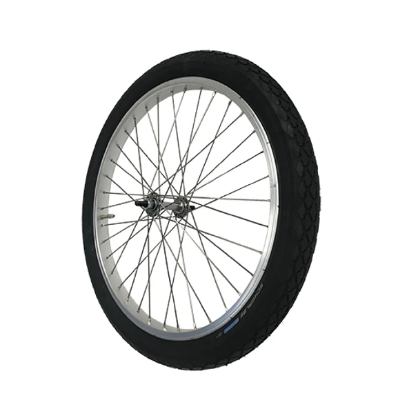 Dimension 20 x 2.125, för äldre typer av cykelkärror, paketkärror, mjölkkärror m.m. Detta hjul ersätter den utgångna dimensionen 20×2 Transport (54-428). (Detta hjul är cirka 15mm mindre i ytterdiameter än 20×2 Transport.)